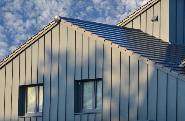 - Stehfalzblech-Fassade: Diese Metallverkleidung zeichnet sich durch ihre hohe Langlebigkeit und einen modernen Look aus. Sie ist besonders widerstandsfähig gegen Witterungseinflüsse.